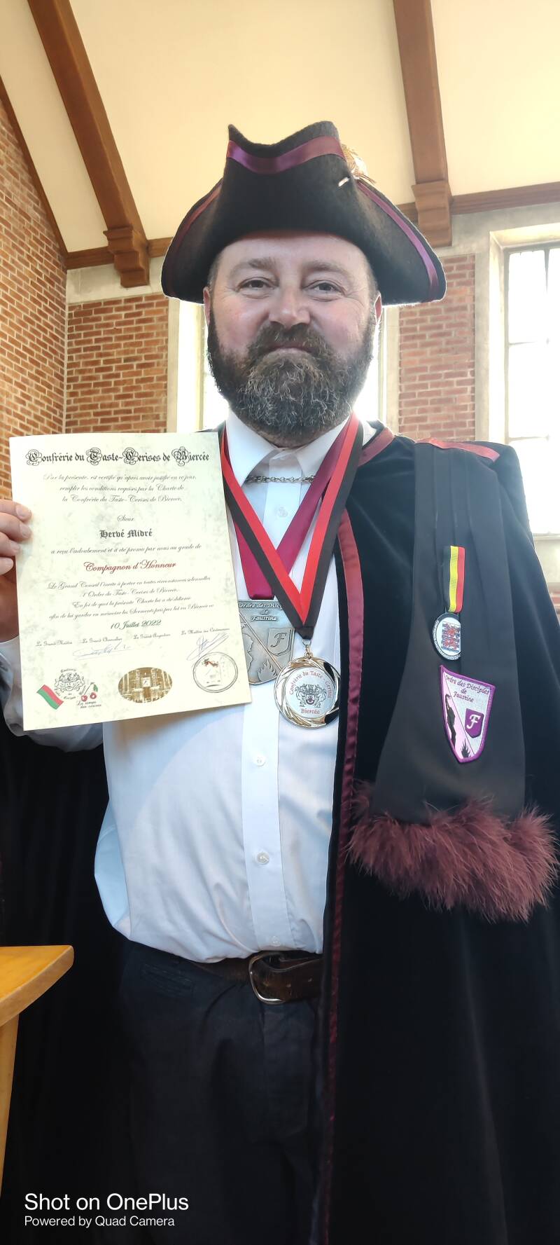 A cette occasion, c'est notre Chevalier Bedel, (Hervé Midré) qui à son tour était intronisé membre d'honneur.