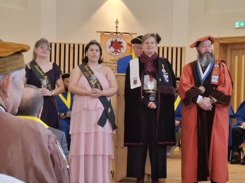 Ce dimanche 30 mars 2025 lors du chapitre de l’Ordre Œnophile de la Couronne d’Or de Marlenheim, notre confrérie était représentée par notre Grand Maître, son épouse la Noble Dame, Carmen et Jean Claude, respectivement Dame Pâtissière et Chevalier Panetier.